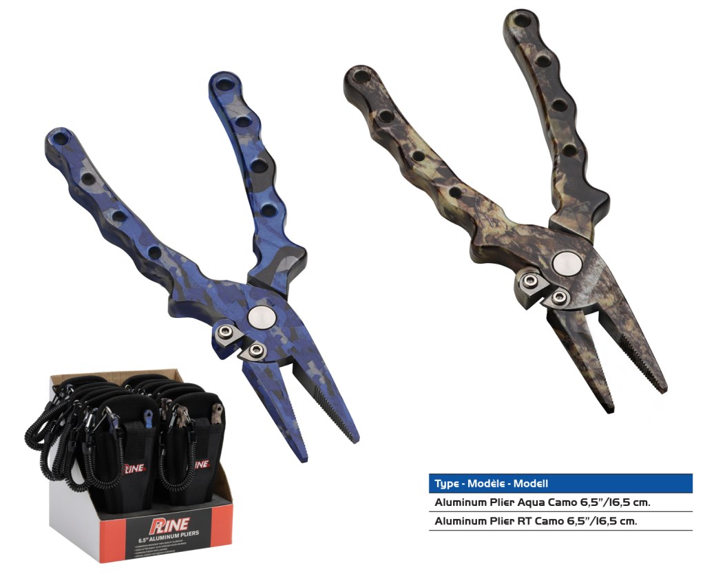 I – Le pinze P-Line Camo sono realizzate in alluminio sagomato con speciali macchine, per ridurre al massimo il peso. Le lame sono in tungsten carbide realizzate appositamente per la treccia e per nylon o fluorocarbon fino a 300 lb. Vengono fornite con una custodia in cordura e un cordino in nylon allungabile, il top per i pescatori di mare e acqua dolce più alla moda!
