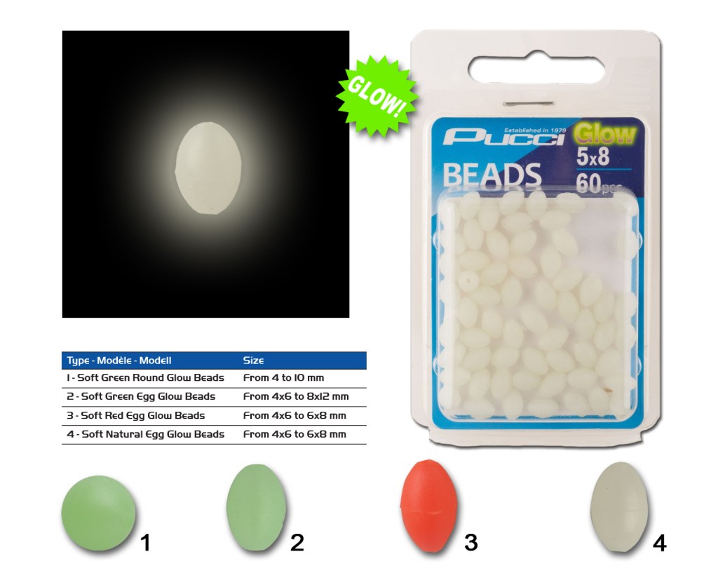 GB – Soft beads of excellent quality. The special treatment makes them extremely luminescent and can be recharged continuously during the fishing session with any light source.